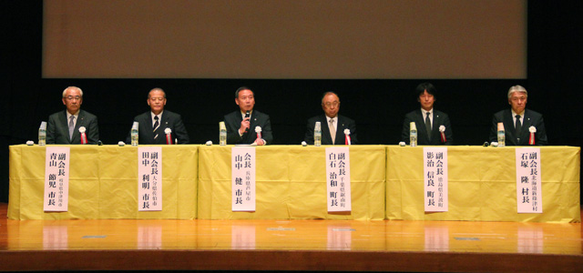 全国市長会議の会長には兵庫県芦屋市の山中健市長、副会長に大分県佐伯市の田中利明市長と岐阜県中津川市の青山節児市長を選出。