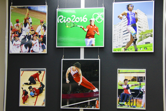 展示する写真の一部。そうそうたるアスリートたちのオリ・パラでの雄姿