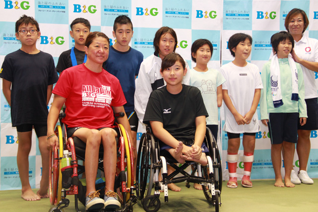 大会には、スペシャルゲストとして水泳でアトランタ・パラリンピックから北京パラリンピックまで4大会連続出場し、合計20個のメダルを獲得した、成田真由美選手もゲスト出場しました。このほか大会顧問として出席した、シドニー五輪の背泳ぎの銀メダリスト、中村真衣さんはスペシャルオリンピックス日本・東京の障害者アスリート4人に水泳指導をしました。