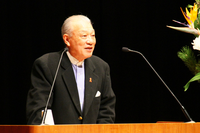 オープニングは、子ども健全育成大使に任命された酒井法子氏の紹介。その後、第一部では、当財団会長、前田康吉(北海道滝川市長)による開会挨拶、来賓紹介に続き、日本財団の笹川陽平会長による『世界と日本の現状』と題した特別基調講演を行いました。