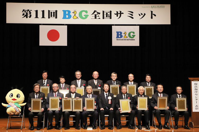 第三部では、「2018年 B&G PR大賞」の最優秀賞の発表と表彰を行うとともに、優良海洋センター表彰として、10年連続「特A評価」を獲得した16海洋センターへ表彰状を授与しました。