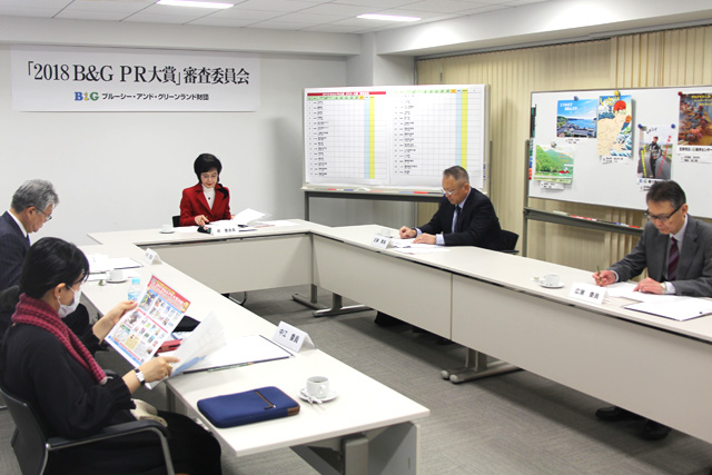 B&G財団では、2015年度から、全国389自治体に所在する海洋センター・海洋クラブの魅力を発信するため「B&G PR大賞」を実施。各自治体が取り組む広報活動の「見える化」を図っています。1月18日午後、有識者5名による審査委員会がB&G財団で開かれ、各部門の作品を厳正に審査。審査委員長として女優で画家の岸ユキさん、委員には女優で作家の中江有里さんなどが務めました。