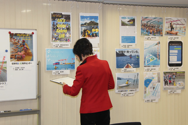 ポスターの審査では、委員が「全部いいね。甲乙つけがたい」と評価するほどで、審査に苦労していました。その中でも、小豆島町内海B&G海洋センターの作品が「ものすごく分かりやすい」と評価を受け、最優秀賞に選ばれました。このほか、ポスターそれぞれに「地域性がある。制作者の顔が見えてくるような作品ばかり」と、選考に苦労する中、優秀賞には、陸前高田市B&G海洋センターなど10点が選ばれました。