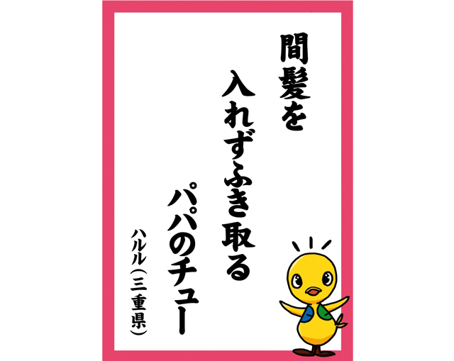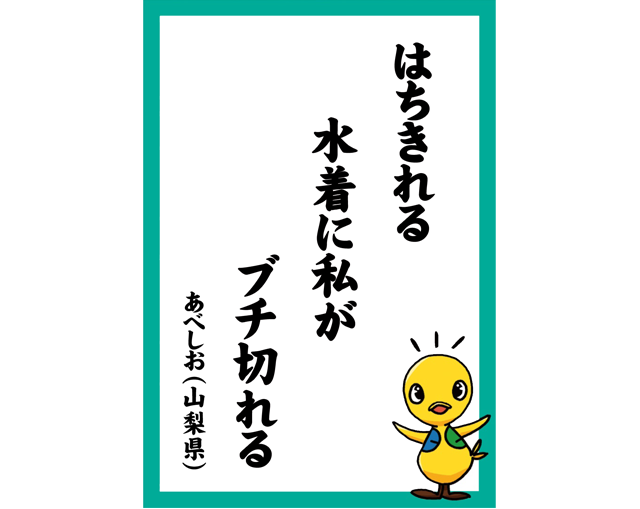 何かを伝えるというのはとても難しいものです。写真、キャッチコピーに地元の優位性、他とは違う個性、この二つがバランス良く入っているのが望ましいのですが、プロでも悩む仕事です。今回はどれも素晴らしかったですが、客観性をもって地元を見つめた作品を選びました。川柳については、お子さんの反応にお父さまは残念でしょうが、これを機に子が嫌がることをしないお父さんになってください。