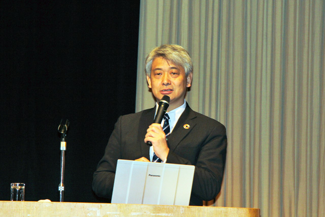 講義の後半では、東日本大震災での自身の被災体験を中心に、セルフレスキューなどの訓練を定期的に実施し、考えて行動できるようになることが大切だと語りました。安倍氏は宮城県東松島市の海岸沿いにある会社事務所で被災し大津波により、会社事務所とともに吉田川を約7キロメートル流されましたが、自力で土手に上がり生還。その時の一部始終を実際の映像を用いて解説していただきました。
