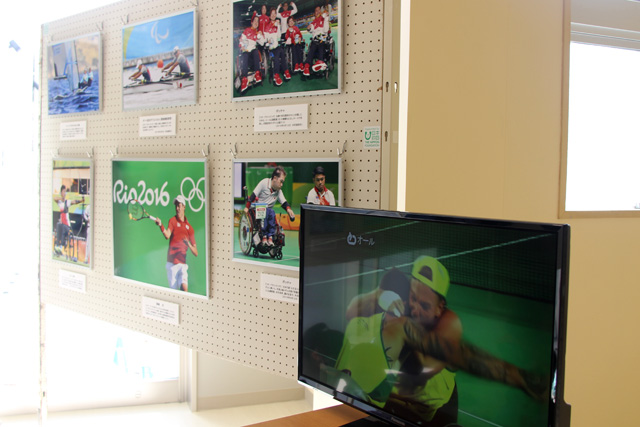 このイベントは全国470ヵ所に所在するB&G海洋センターのうち、22ヵ所で実施。施設の空きスペースに、過去のオリンピック・パラリンピックの名場面を納めた写真パネル50枚を掲示する写真展です。今年度最後の実施場所となったのは、テニスの錦織圭選手が通っていた雲南市B&G海洋センターラソンテ。同施設では、3月9日から18日にかけて写真パネルが掲示され、開催初日は多くの地元住民で賑わいました。