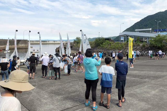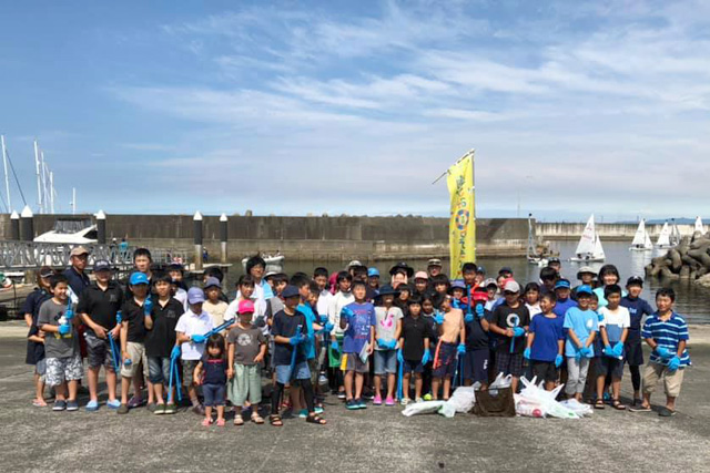 大会終了後は、参加選手と保護者でヨットハーバー内に流れ着いた漂着ゴミの清掃活動を行いました。