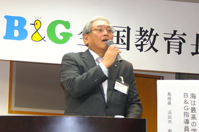 島根県浜田市教育長の石本一夫氏は、地域の豊かな海を活用した浜田市の取り組み「ふるさとマリン郷育(きょういく)」を報告。