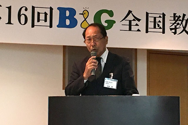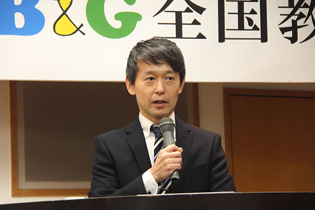 各自治体教育長からの発言を引き継いで、B&G財団が「全ての子供達に生きる力を」という理念の下に取り組む各種事業を紹介。体験格差解消、BG塾など各種の支援プログラムを、今後も各自治体で積極的に活用してほしいと訴え、第一日目を終えました。