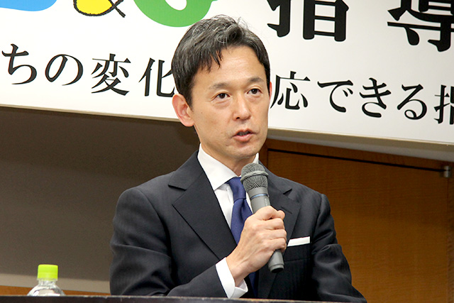 ペップトークとは、スポーツの試合前に指導者が選手を励ますために行う、短い激励のスピーチを意味します。現在は、スポーツ界のみならず、教育現場やビジネスなど幅広い分野で注目を集めています。激励のプロである岩崎氏の講義はエネルギッシュかつポジティブ!時折ユーモアを交えながら軽快に講義は進んでいきました。