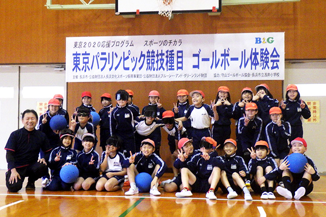 滋賀県の長浜市浅井B&G海洋センターは、オリンピアン・パラリンピアンの雄姿を集めた巡回写真展「スポーツのチカラ」(2020年1月18日~1月26日)の同時開催事業として、1月24日(金)、幅広い年齢層を対象にパラリンピック種目のひとつ「ゴールボール」の体験会を実施しました。参加者は小学生28名、大人3名という内訳でした。