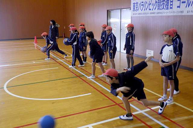 ゴールボールは視覚障碍者向けのスポーツとして生まれましたが、「アイシェード」と呼ばれる目隠しをつけることで、健常者も同じ条件で競技できます。目隠しをつけた状態でボールを投げたり、転がってくるボールを手で止めたりするなど、小学生にも取り組みやすい競技です。今回は、福祉に関する授業に取り組む浅井小学校の4年生を対象にしました。2024年に県内で開催される全国障碍者スポーツ大会への関心を高めるのが目的です。