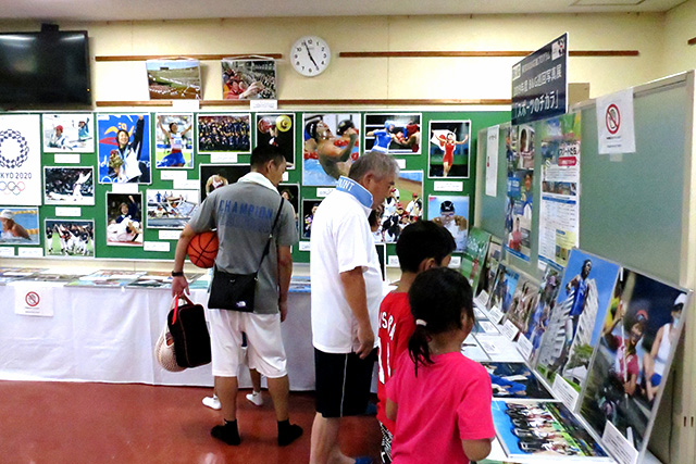 巡回写真展の様子の躍動するアスリートに釘付けの参加者