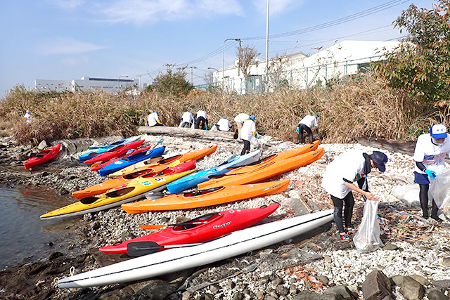 しかし、3密回避などの観点からコースを変更し、都心でヨット・ゴルフ・キャンプ・BBQが楽しめるウォーターフロントとして注目される「若洲」をスタート地点に、若洲と「東京ゲートブリッジ」でつながるボート・カヌー競技のオリ・パラ会場「海の森水上競技場」、正面に「お台場」の建築物や「パレットタウン大観覧車」を眺める、東京湾最奥部の「砂町南運河」をカヌーで巡り、陸上からは立ち入れない護岸の清掃を行います。