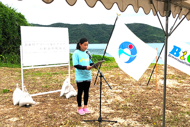 また、クラブ員を代表して、小宿小学校6年の永田羽音さんは「奄美大島には朝仁海岸や大浜海岸など素敵な海がたくさんある。これから島の素敵なところをもっと知って、地元の海を楽しみたい」とお礼の言葉を述べました。