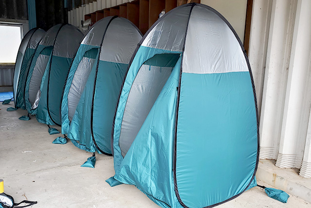 実施にあたっては、3密を避けるため個別の更衣用テントや、氷や塩飴など熱中症対策も万全にして行いました。