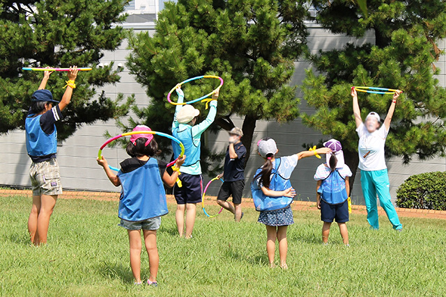 先生からは「フラフープなどをつかって、グループで楽しむ方法をいろいろ学び参考になった」「跳んだり走ったり思いきり外遊びができてよかった。子供は元気が一番」などの意見が寄せられました。