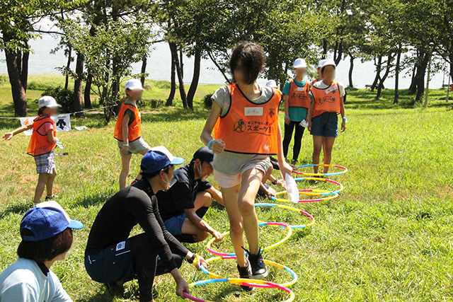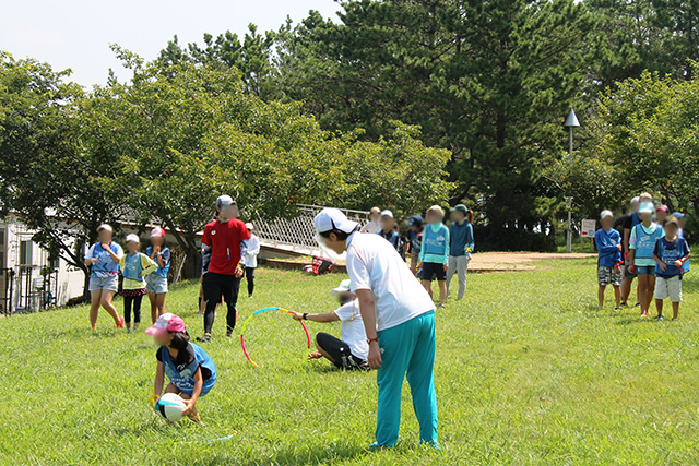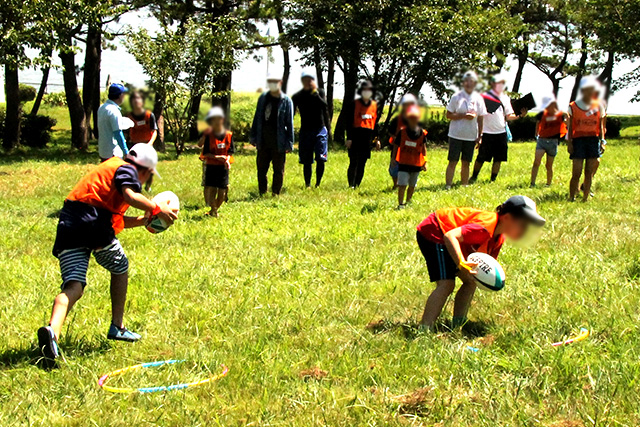 子供から「フラフープの縄跳びとリレー競走がおもしろかった」「ラグビーボールのリレーで一番になってうれしかった」と元気に感想を話してくれました。