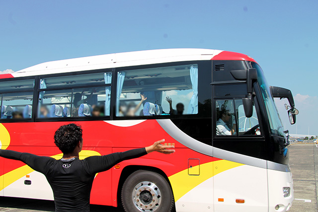 帰りのバスを見送る際、子供たちは大きな笑顔で手を振りながら、若洲ヨット訓練所を後にしました。