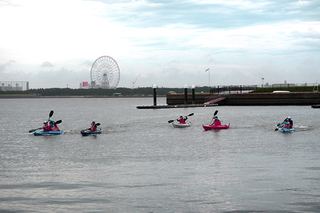ディズニーランドや葛西臨海公園を望める素晴らしい眺望でのカヌー基礎練習