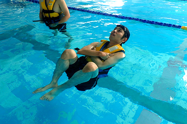 ライフジャケット浮きの練習(ヘルプポジション)