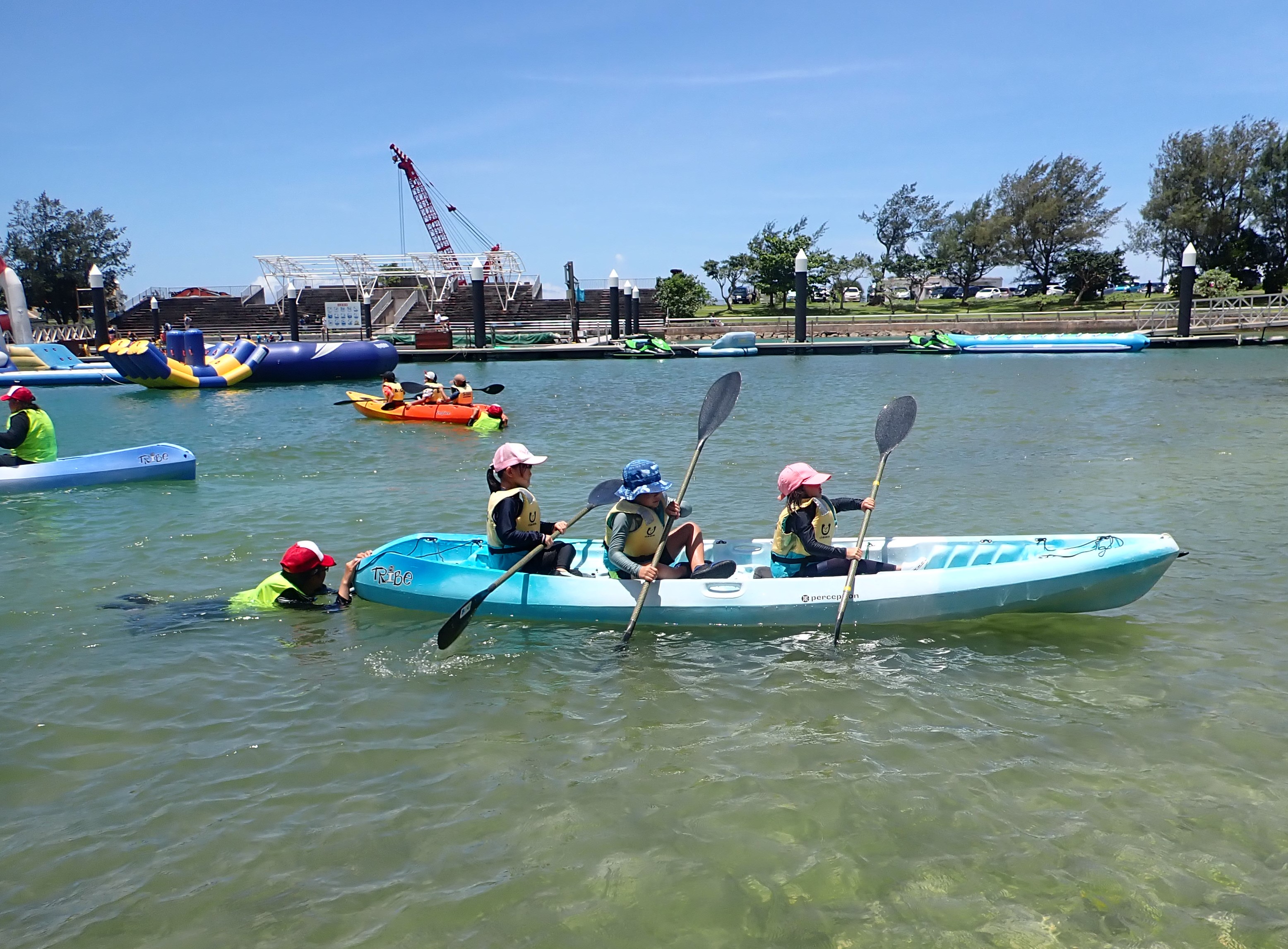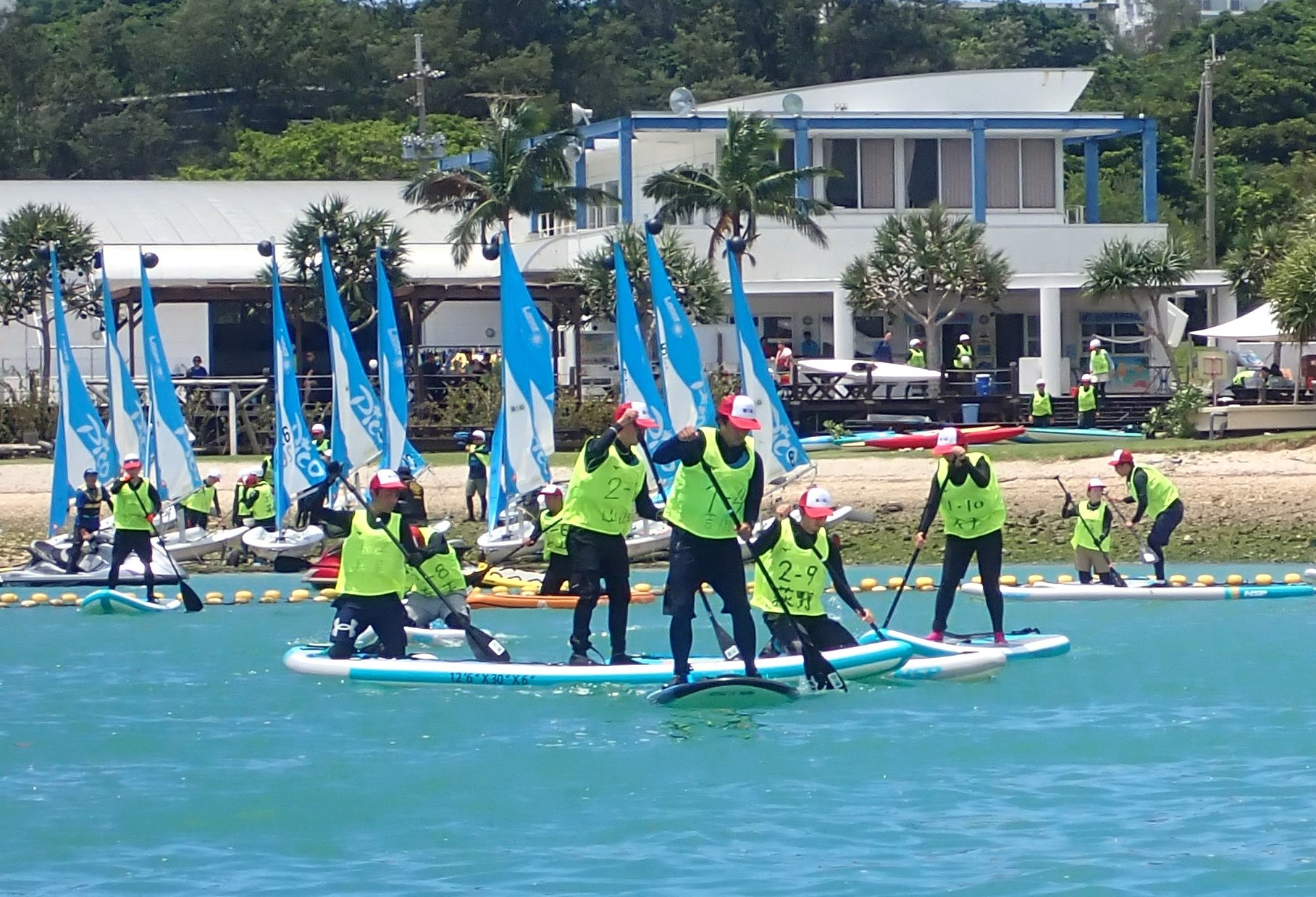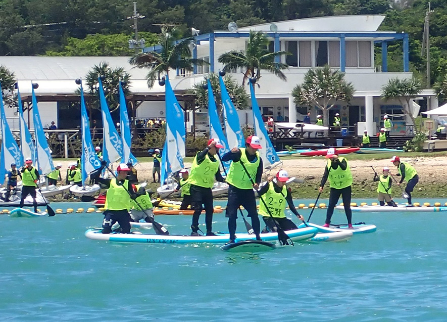 今回の研修では、ヨット・カヌー・SUPの実技・指導法をはじめ、心肺蘇生法、応急手当、リスクマネジメント、救助艇を使った災害救助、障がい者スポーツ・パラ水泳、郷土教育などに関する知識と技術を各自が身につけた。