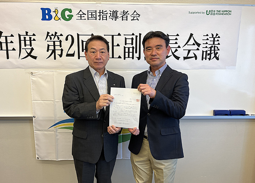 B&G全国指導者会の工藤会長をはじめ、曽根由多副会長(静岡県牧之原市)、工藤陽平副会長(熊本県湯前町)、中島博臣副会長(B&G財団)、B&G財団 朝日田常務理事らが出席して行われた。