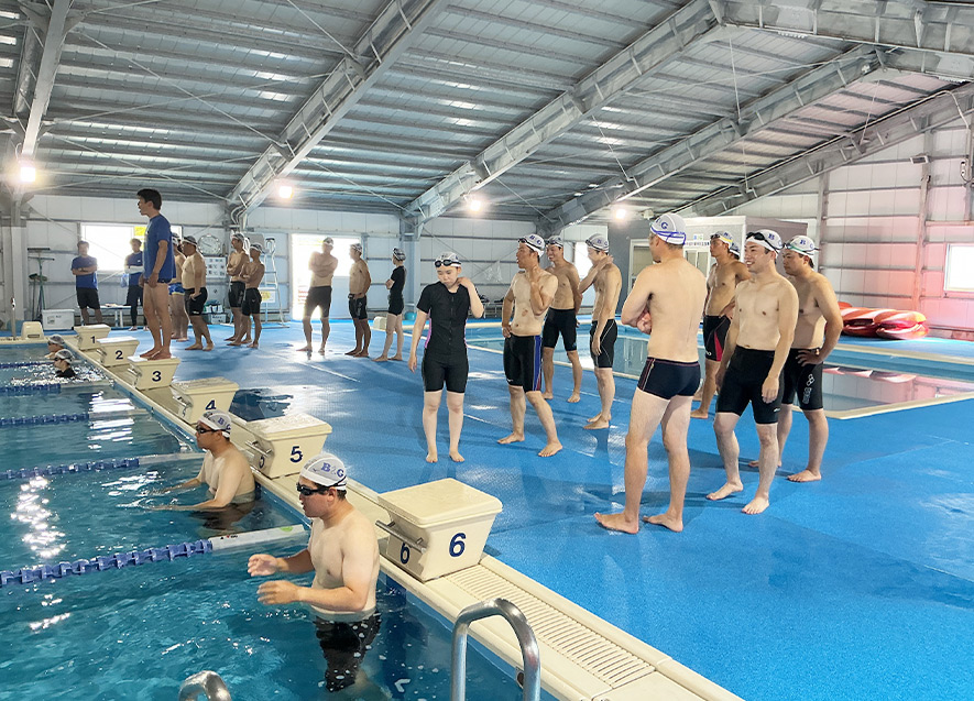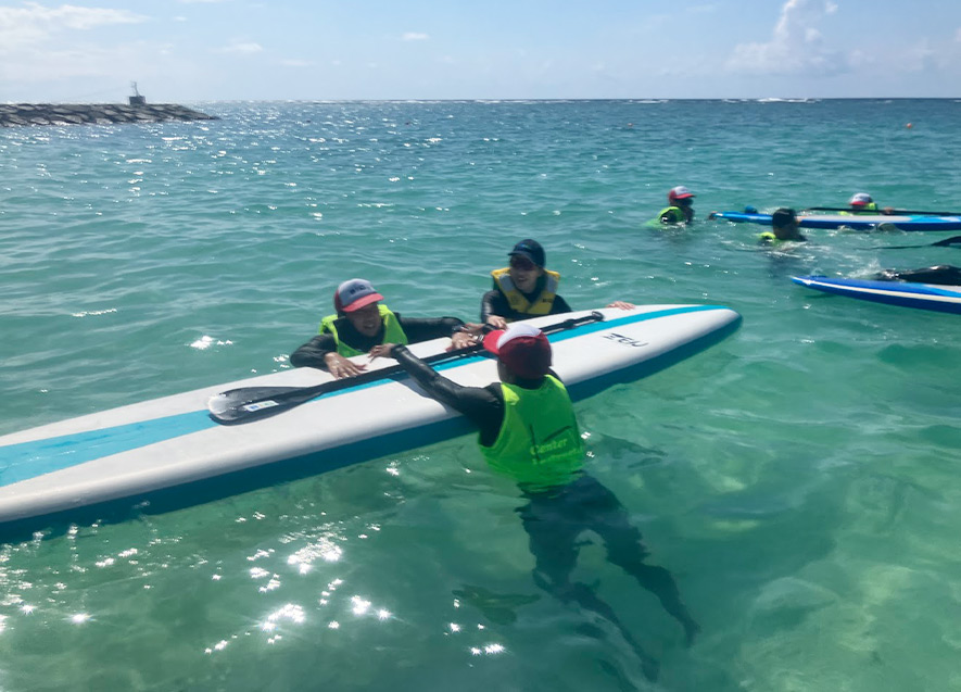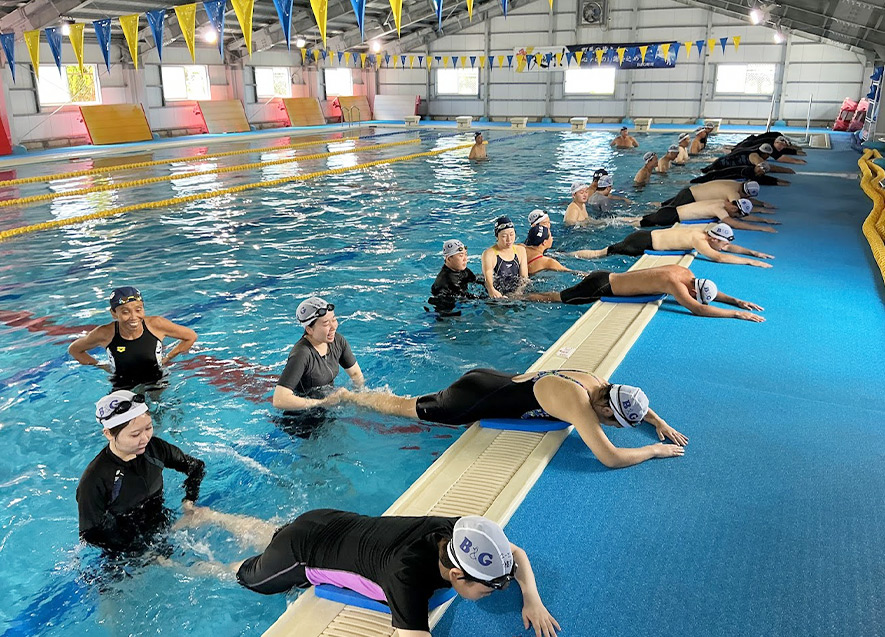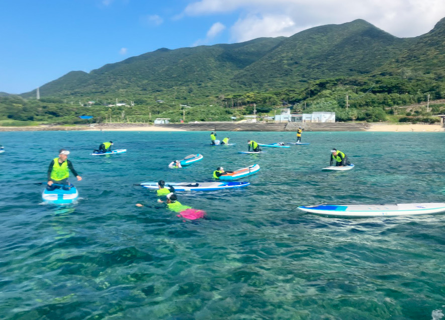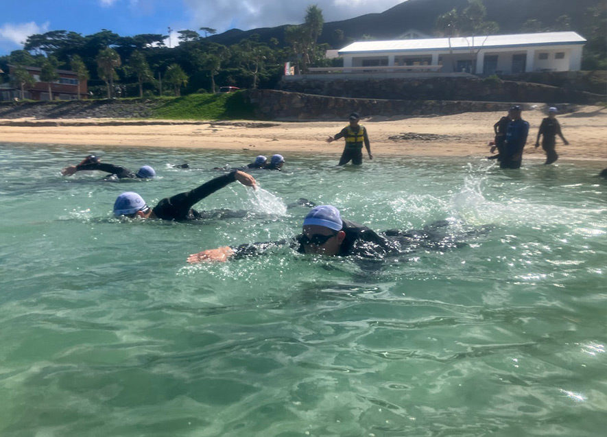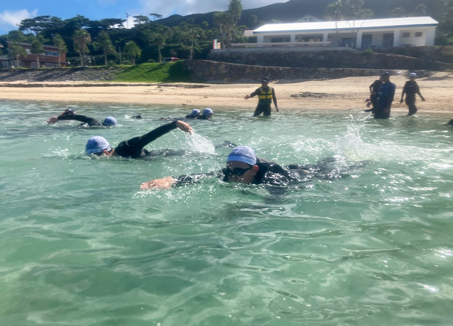 今回の研修では、水泳・カヌー・SUPの実技研修をはじめ、リスクマネジメント研修や普通救命講習、障がい者を対象とした指導実習のほか、天城町民体育祭への参加などを通じて、地域に貢献できる指導者としての知識や技術を習得し、全カリキュラムを修了した。