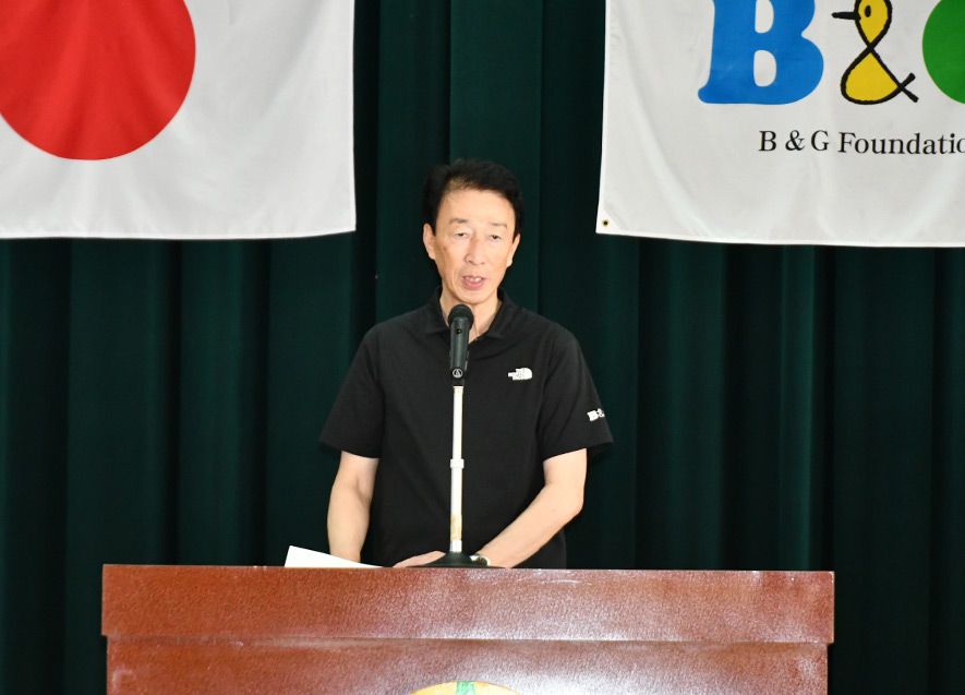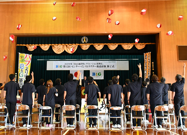 B&G財団会長の前田は、互いを尊重し、敬意と感謝をもって支え合いながら、無事に研修を修了したことをうれしく思うと述べ、「この研修で身につけた指導力を海洋センターや所属先で発揮し、地域おこしに貢献してほしい」と期待を寄せた。