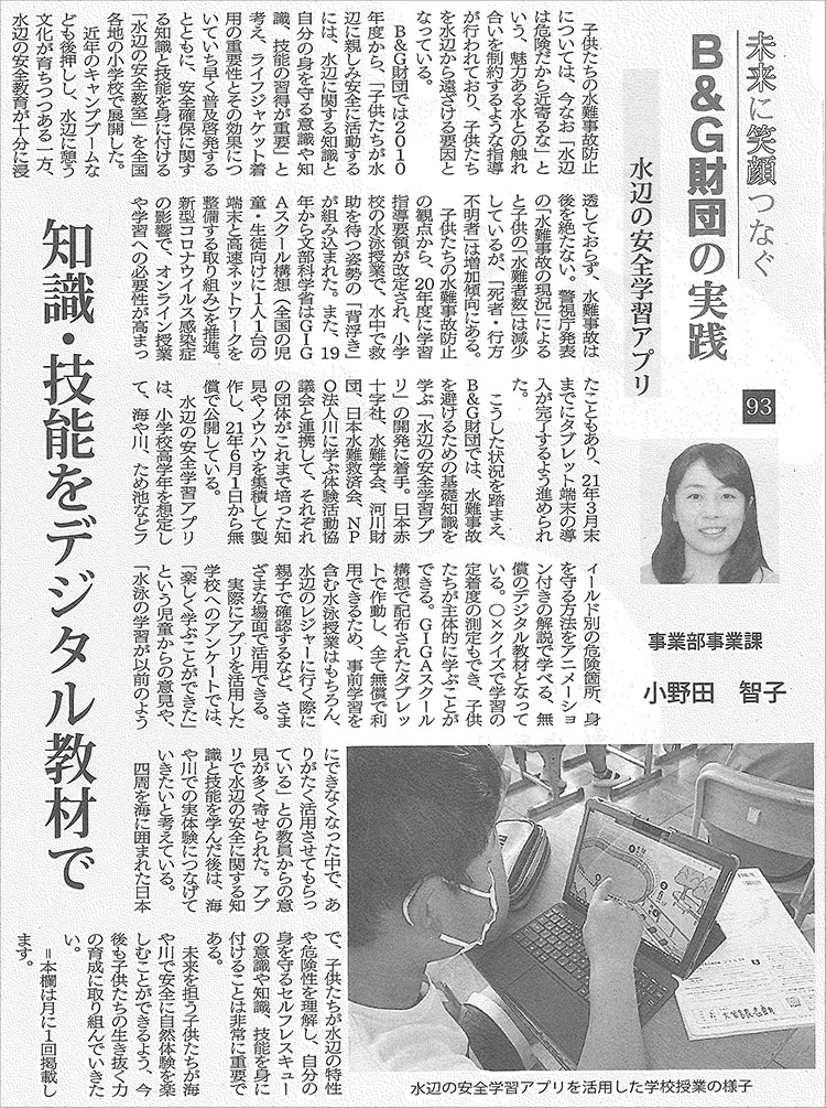 今回ご紹介したポイントは、B&G財団が展開する水辺の安全教育プログラムの一部です。
