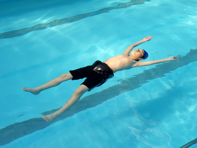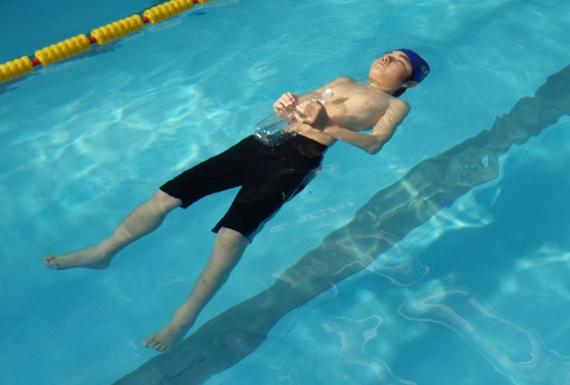 ・背浮きができない子供もペットボトルを使うと、背浮きができる。
