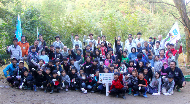 B&G財団は東に南アルプス、西に中央・南アルプスを望む2つのアルプスに囲まれている自然豊かな長野県飯島町(いいじままち)で、10月4日に植樹祭を行い、小学生が楽しみながら広葉樹400本を植えました。参加者は七久保小学校4・5年生49人をはじめ、保護者や一般参加者、運営スタッフなど総勢180人でした。
