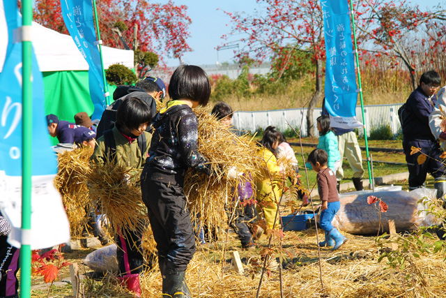 みんなで藁を運びました