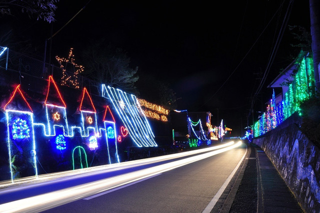 | おすすすめポイント | 鹿児島県湧水町二渡地域を挙げての一大イベント、全長1.7㎞の住宅街の家々に約13万個の色とりどりの電球が飾られ、住宅街がきらびやかに彩られます。 地域のイルミネーションとして年々スケールアップして、毎年見物に訪れる人が多く、屋台も出店します。クリスマスイベントも開催されます。 湧水町にお越しになる際は、ぜひお立ち寄りください! 【点灯期間】 |