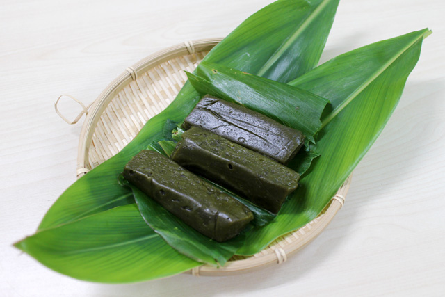 | おすすすめポイント | お祝い事などで食べる、与論の特産品です。 あまり日持ちしないので、与論でしか食べられないのが特徴です。 サンニンという月桃の葉で包まれたプチムッチャーは、ヨモギの香りと黒糖のほどよい甘さがあり、とても風味豊かなお餅です。 もともとプチムッチャーは、旧暦にあたる3月3日の浜下りの日に、町で食べられていたもので、女子には草履と笊、男子はティル(魚籠)と草履をはかせて、海辺で子供の成長を祝ったとされています。 |