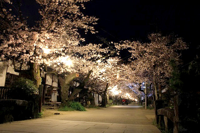 | おすすめポイント | 福岡県朝倉市の北部に位置する城下町・秋月。 「九州の小京都」とも言われる風情ある街並は、しっとりとした佇まい(たたずまい)で、多くの観光客を集めています。秋月城への登城道の途中には、杉の大樹がたくさんあったため「杉の馬場」と呼ばれています。 歴史情緒漂う山間の小さな城下町にある約500mの桜並木は、古(いにしえ)をほうふつとさせる景観と飾らない自然が合わさって、息をのむほど美しい桜のトンネルになります。また、夜はこの長い桜並木に裸電球が並び、幻想的な夜桜が楽しめます。 毎年、4月第1日曜日には「秋月春まつり」が開催されます。 |