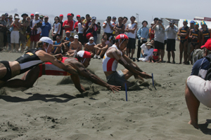 ライフセービングではビーチフラッグを取り合う競技がありますが、このビーチフラッグは傷ついた人を意味しています。つまり、いかに早く傷ついた人のもとへ行って、安心を与えることができるかを競っているわけであり、この意味を理解すれば競技に臨む選手の意識も大きく変わります。