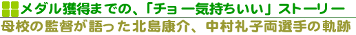私は、日本体育大学(以下、日体大)で水泳の授業を担当するとともに、学友会水泳競技部(男女)の監督を受け持っています。康介と礼子は2001年に入学し、その後、水泳競技部に籍を置きながら数々の大会で活躍し、昨年のアテネオリンピックでは見事にメダルを取ってくれました。