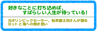 先輩方の力添えを受けて、充実した大学生活を送ることができた松本さん。卒業して就職先を探すときも、思わぬ助けが入りました。実業団ヨット部を立ち上げようとしていた、巴工業という会社から「ヨットを続けたいのなら、ウチに来ないか」と声を掛けられたのです。