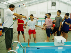 現在、小松さんはB&G財団とともにプールでヨットを体験する「OP級ヨットチャレンジセーリング」を全国各地で展開していますが、プールで初めてヨットに乗る子どもたちを前にすると、いつも自ら感じたこの怖さを思い出すそうです。「最初に怖いと思うのは、ごく自然なことなのです」と小松さん。そこから、どのように子どもたちをヨットに導いていったらいいのかを考えるうえで、このときの体験がとても役に立っているそうです。