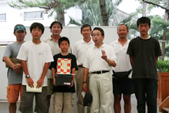 | B&GOPヨット大会で入賞者と記念撮影をする小松さん(2列目、左から2番目) |