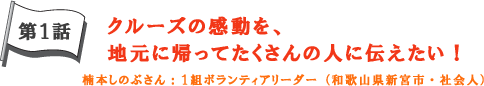 地元に帰ったら、よりたくさんの地域の人たちにその感動を伝えたいと語ってくれた楠本さん。もちろん、また機会があればクルーズに参加して子どもたちと有意義な一週間を過ごしたいそうです。
