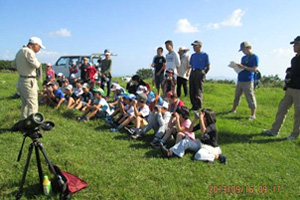 島に渡ってくる鷹の観察に励む子供たち。貴重な島の自然を学ぶことで、自分たちの郷里に誇りを持つようになります