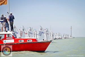 初めての国際舞台、ハンガリーで行われた2013 OP級ヨーロッパ選手権大会でのスタートシーン。海外の強豪と競り合いながら貴重な経験を積みました(写真提供:尾道輝寿さん)