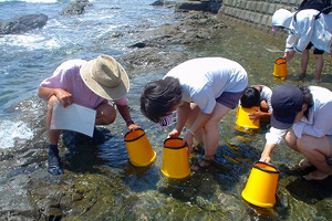 地元の海で生き物観察を行う「葉山マリンキッズ」の子供たち。海野さんは、さまざまなプログラムで子供たちを家の外に出していきました