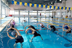 市町合併を機に、B&G財団の修繕助成を利用してプール上屋の全面建て替え工事を行った高岡市福岡B&G海洋センター。暖房設備を整えて通年の営業が可能になったことから、水中ウォーキングに励む高齢者を中心に利用者の数が増えていきました。