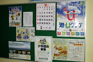 体育館の受付には「遊・Uクラブ」をはじめとする各種スポーツ団体の案内が所狭しに貼られており、施設の活発な利用が伺えます。最近では隣の市から訪れる利用者も少なくありません