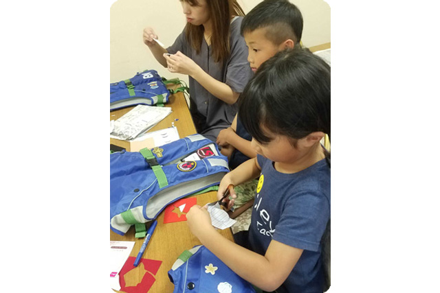 前日の13日に呉市蒲刈B&G海洋センターで、オリジナルライフジャケット作成教室を行いました。