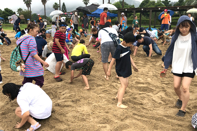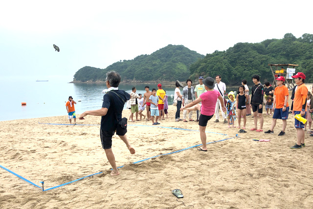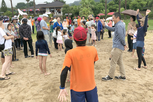 当日は、快晴とはいかず時々小雨が降る中にもかかわらず、延べ500人近くの方が参加し、子どもたちだけでなく大人も一緒にビーチでプログラムを楽しみました。