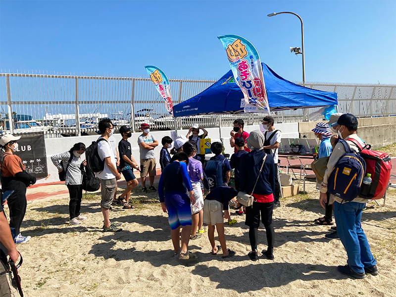 当日、参加者は須磨海岸と中突堤中央ターミナルの2ヵ所に分かれて集合。須磨海岸の参加者は午前中に砂ASOBeach(SUP体験・宝探し・ビーチクリーン活動)を行い、午後から「帆船みらいへ」の遊覧乗船。中突堤ターミナルの参加者は午前中に遊覧乗船、午後から砂ASOBeachを行う、午前・午後の入れ替え制で実施し、海を一日楽しみました。